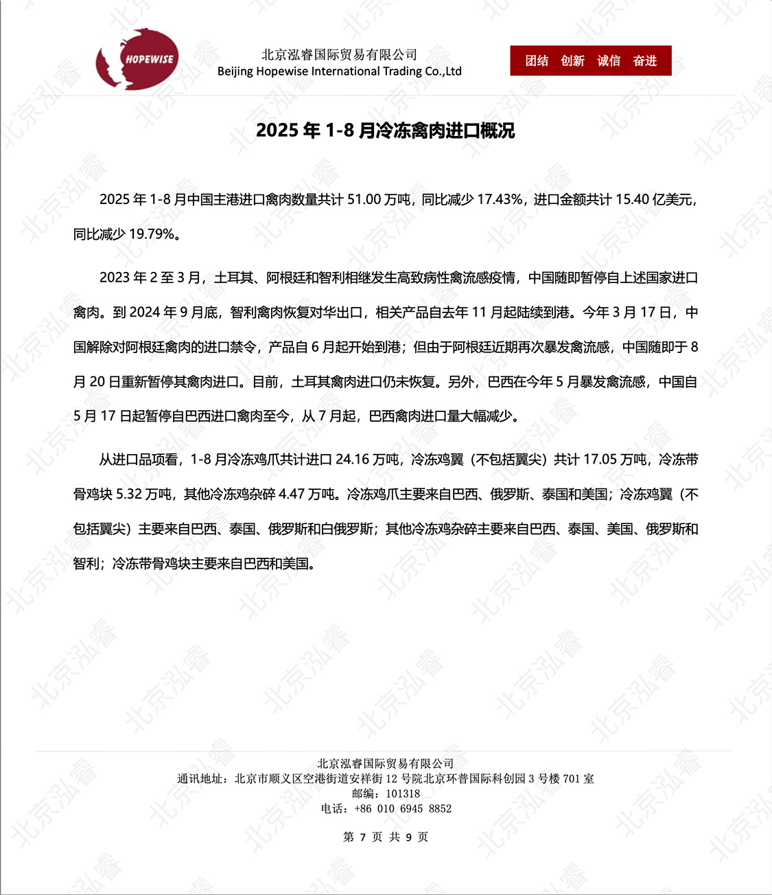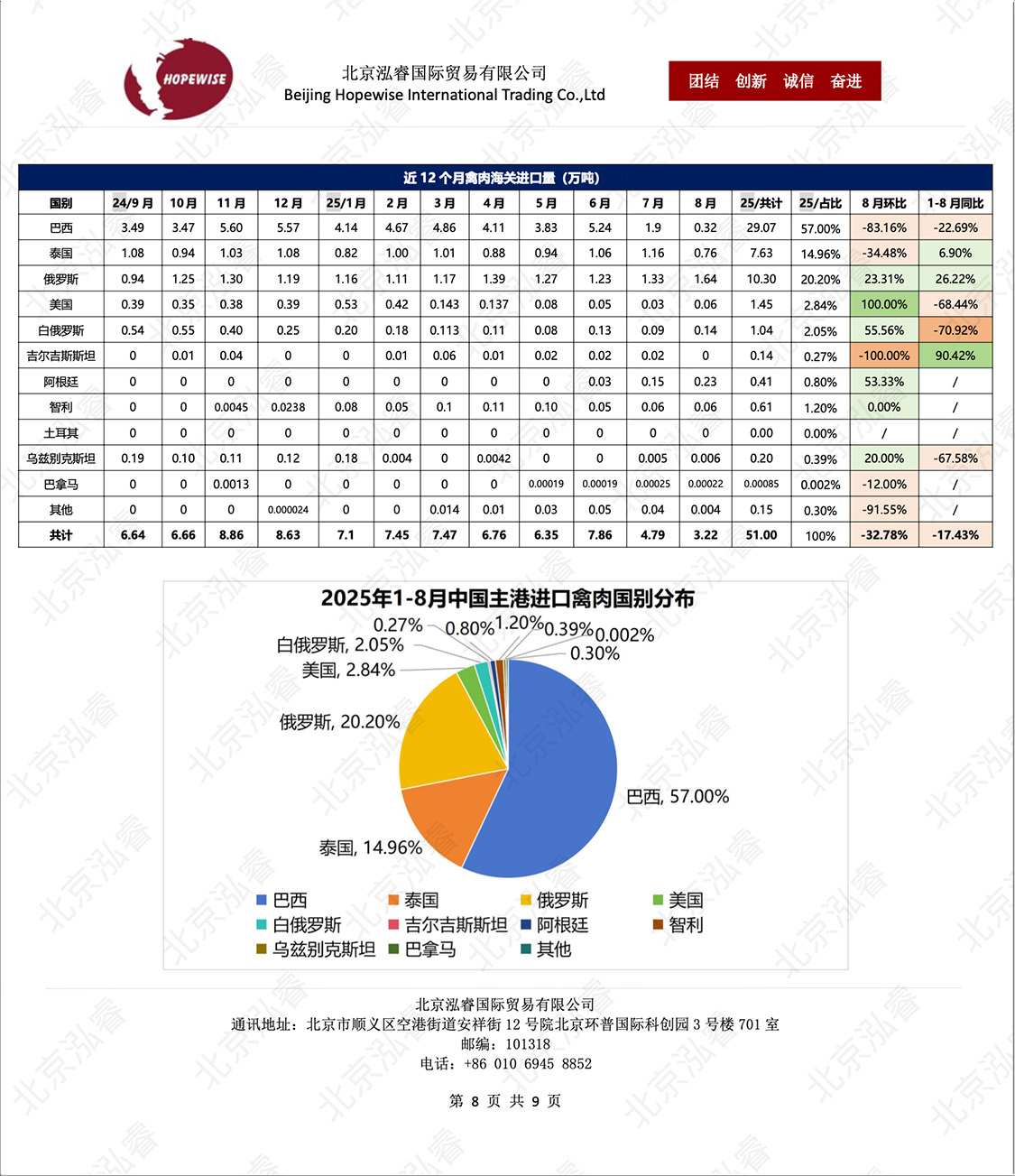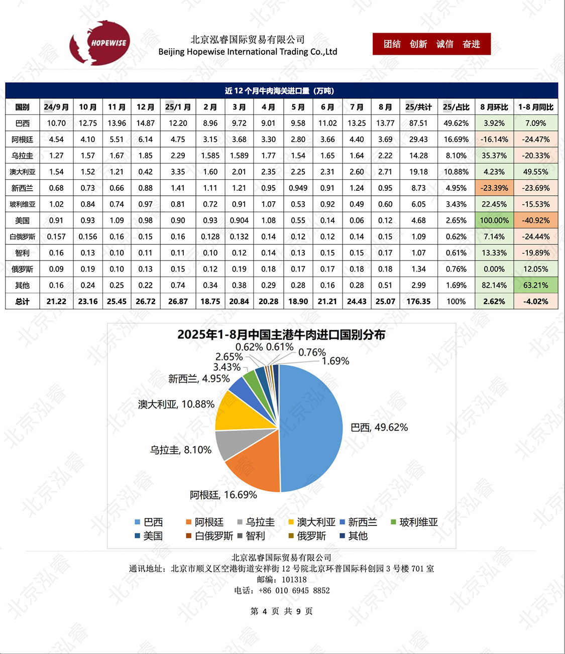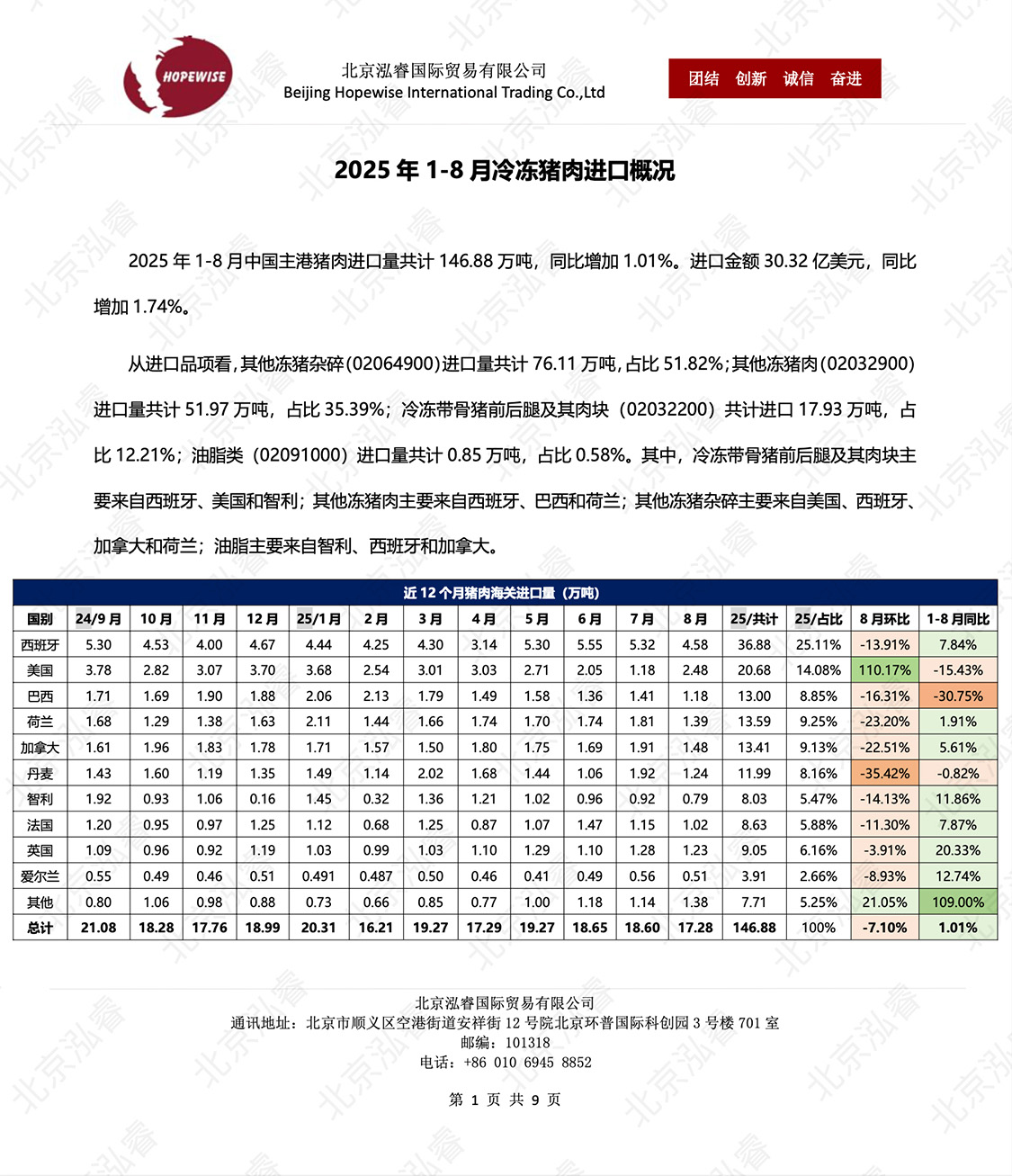 2025年1-9月冷冻猪牛禽肉海关进口数据