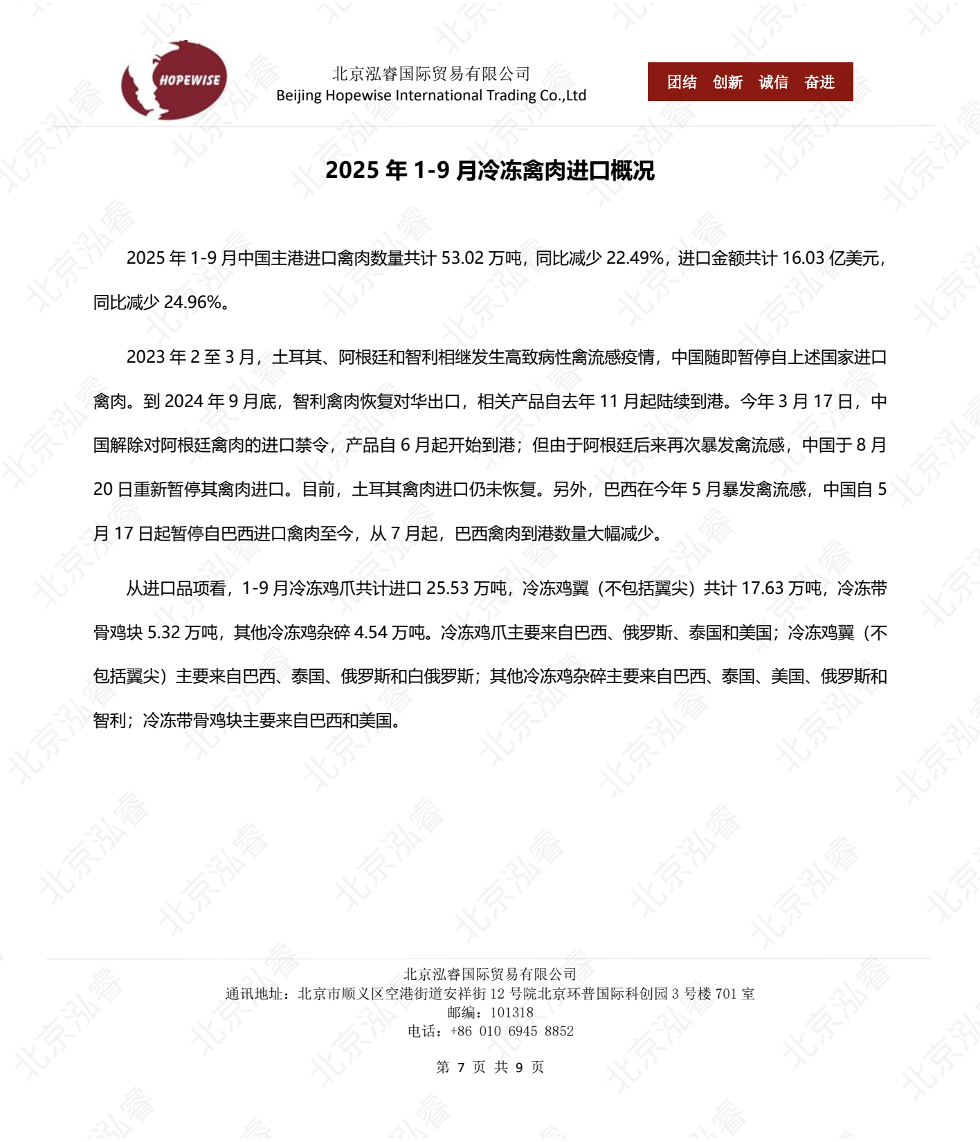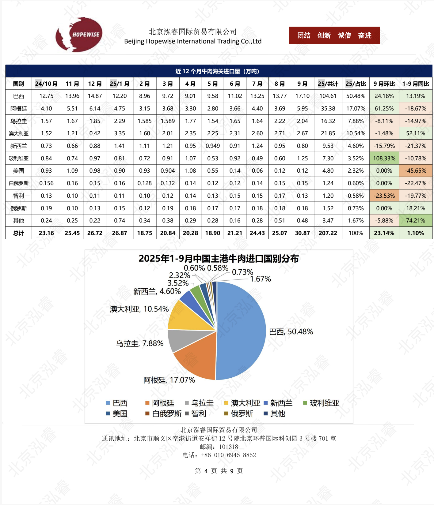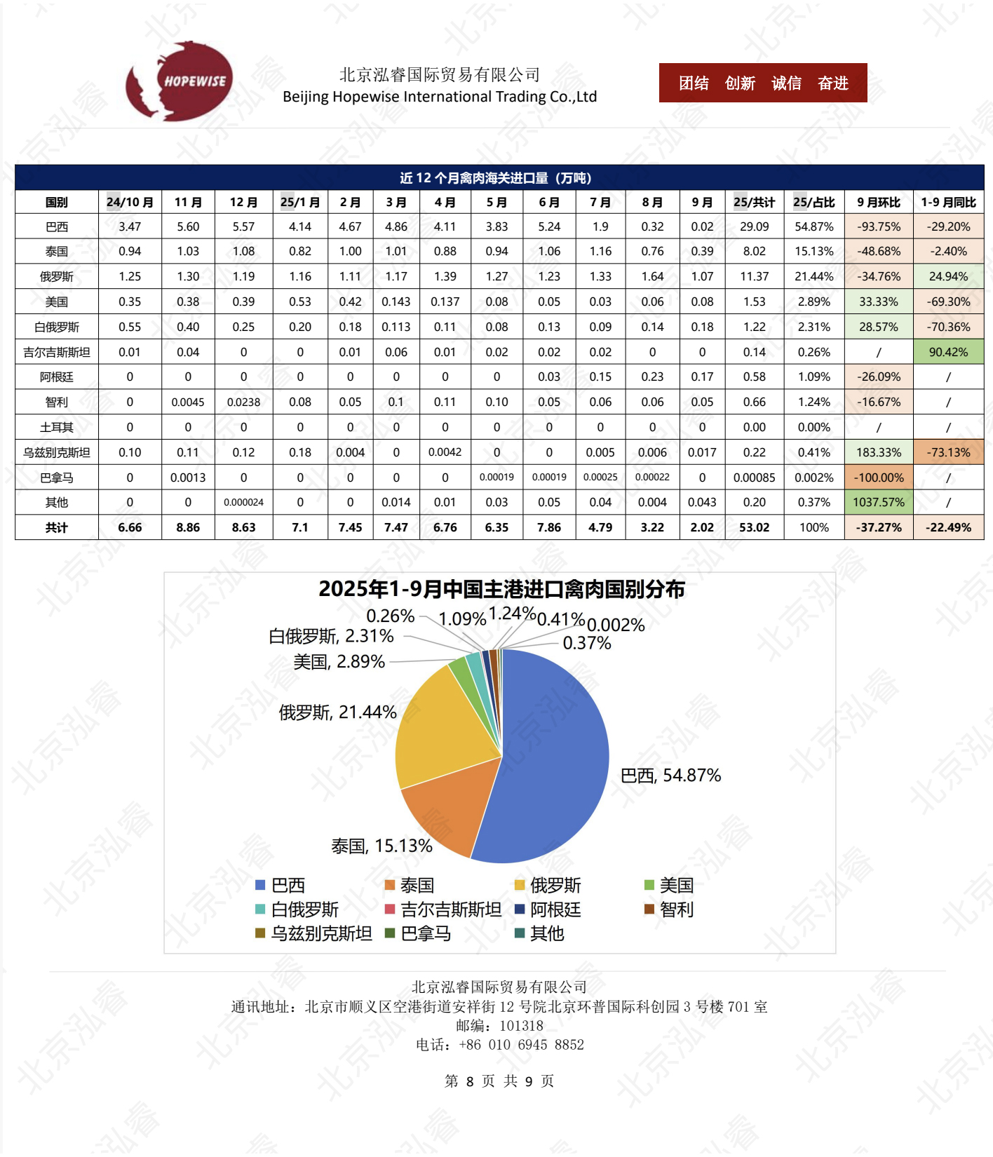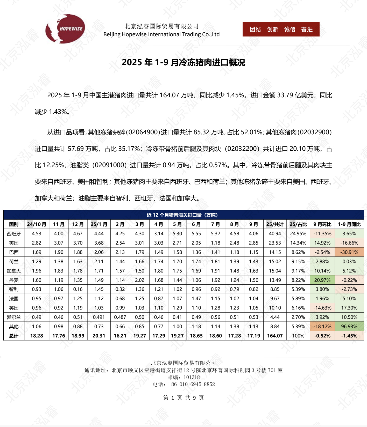 2025年1-9月冷冻猪牛禽肉海关进口数据