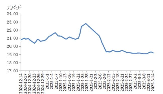 本周华东地区猪肉价格环比微涨,周内先涨后跌。周前期散养户压栏惜售,生猪及猪肉供应短时收紧支撑价格上涨。随着规模养殖场陆续恢复出栏节奏,生猪及猪肉供应量回升,而鲜品猪肉订单量下降,屠宰企业多小幅降价销售。